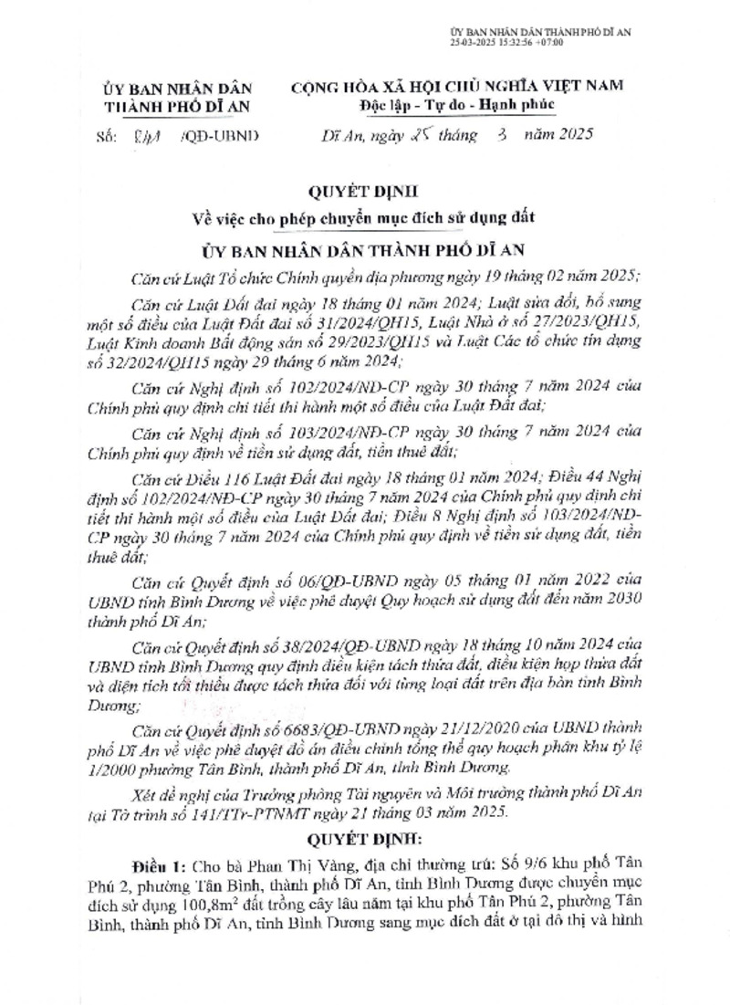 841.QD Về việc cho phép chuyện mục đích sử dụng đất