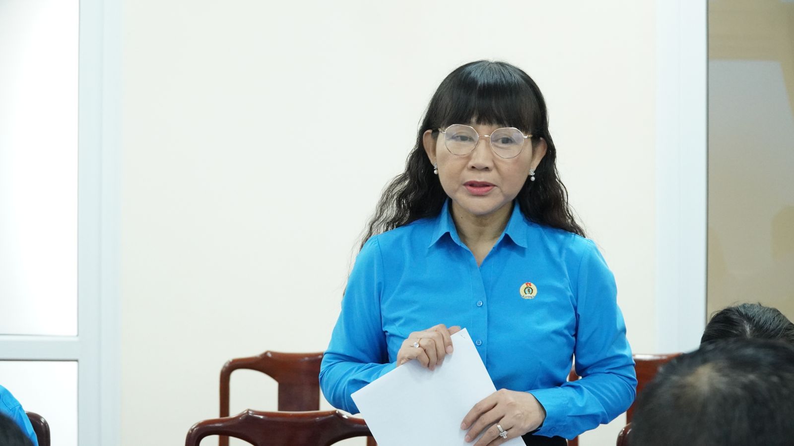 Bà Đặng Thị Kim Chi - Uỷ viên Ban Thường vụ LĐLĐ thành phố Hồ Chí Minh chủ trì buổi làm việc