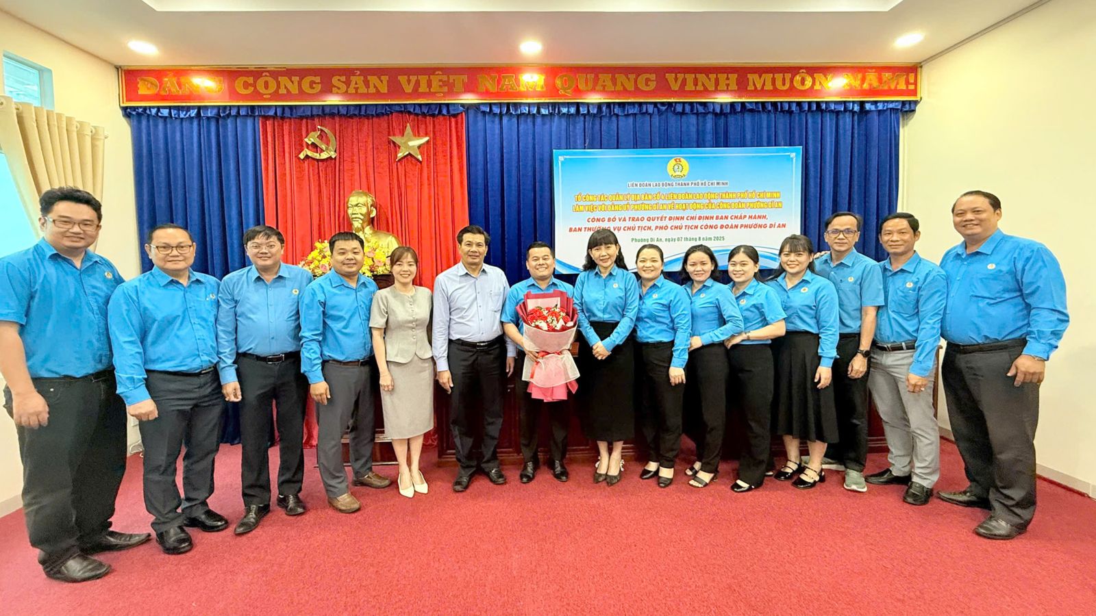 Tổ công tác trao Quyết định của LĐLĐ TP Hồ Chí Minh về việc thành lập Công đoàn phường Dĩ An